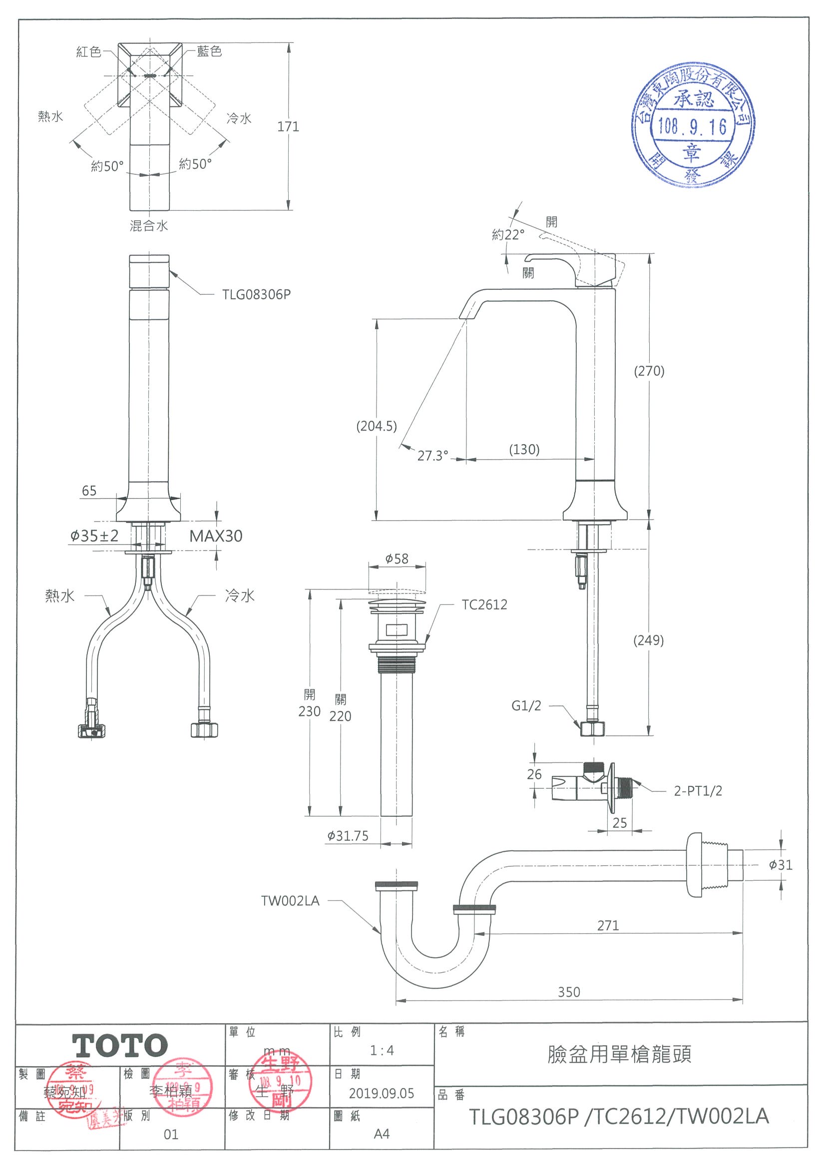 TOTO TLG08306P 臉盆用單槍龍頭 (長)