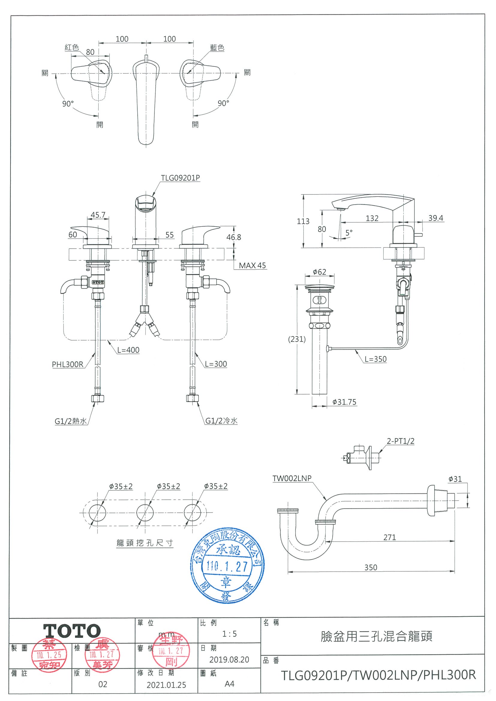 TOTO TLG09201P 臉盆用三孔混合龍頭
